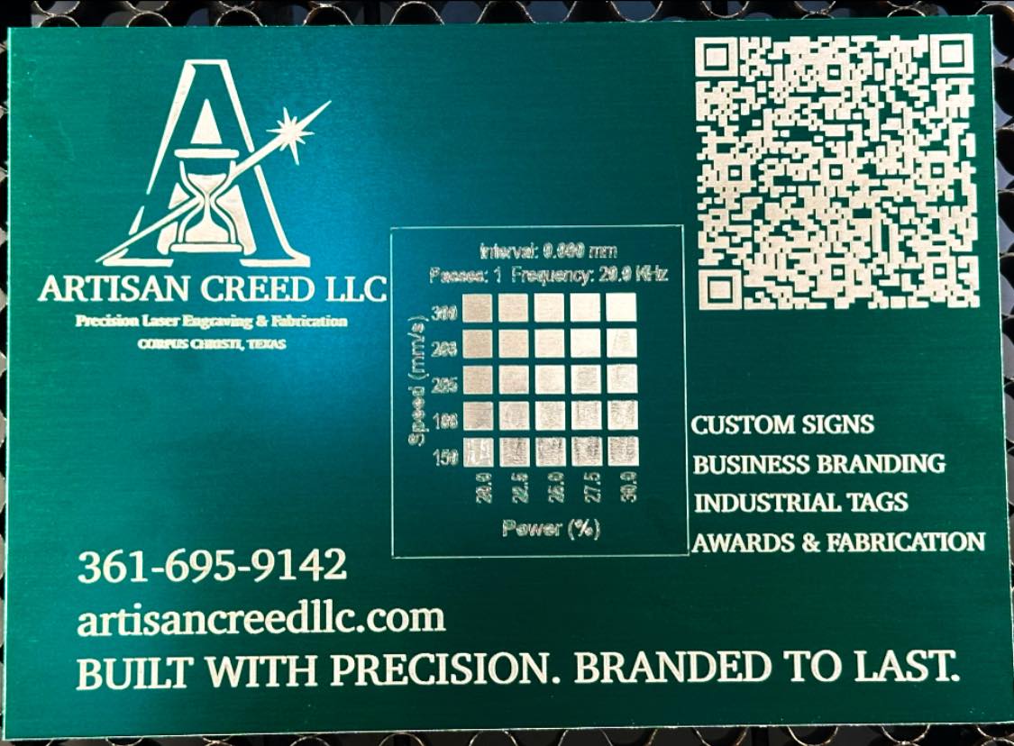 This real-world industry experience allows Artisan Creed to design and fabricate professional signage, engraved tags, equipment ID tags that meet the needs of businesses across Corpus Christi and South Texas.